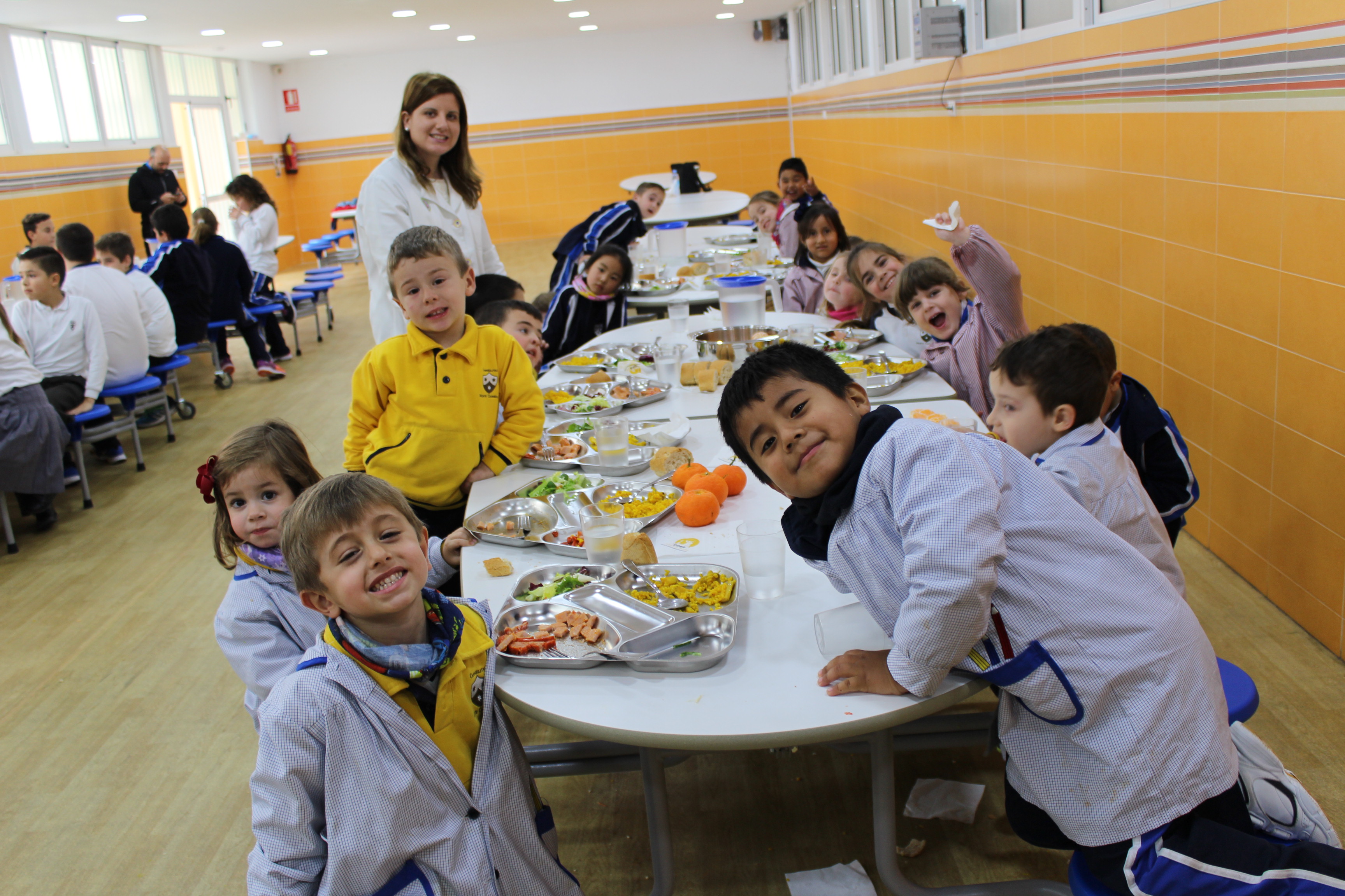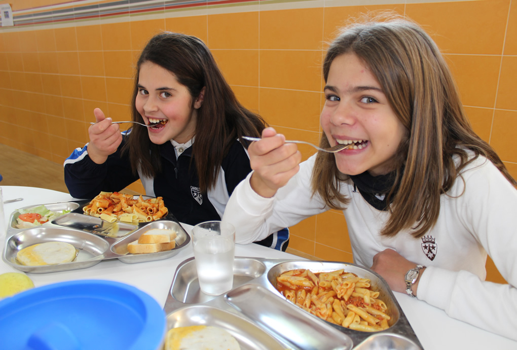 Desde el Colegio... Ofrecemos el servicio de Comedor Escolar para todas las familias que lo soliciten. Es atendido por personal contratado por el Centro y por personal contratado por la empresa COES, S.L. La empresa COES, S.L., nos ofrece el servicio de catering basado en la cocina natural y artesana (casera, mediterránea y tradicional) con productos de calidad y profesionales de cocina de "alta gama" bajo los máximos controles de higiene. La empresa COES, elabora los menús, adaptándose a las necesidades nutricionales de los escolares para conseguir un óptimo estado de salud. Incluye "picnic" para los días de excursión. El comedor está atendido por monitores, que realizan la labor de tutela y se preocupan de que adquieran buenos hábitos en el comportamiento de comer, de respeto hacia los mayores que los atienden y entre ellos, así como a las cosas y juegos que utilizan, favoreciendo la buena convivencia y colaborando con el objetivo educativo del Centro. Consideramos muy importante la labor de atención a los alumnos llevada a cabo en el comedor por dos aspectos fundamentales: por una parte, porque los niños de Educación Infantil y los más pequeños de Primaria necesitan una especial atención y cuidado, y por otra, porque nuestra labor como educadores busca su formación integral y ésta también implica un adecuado comportamiento en la mesa.